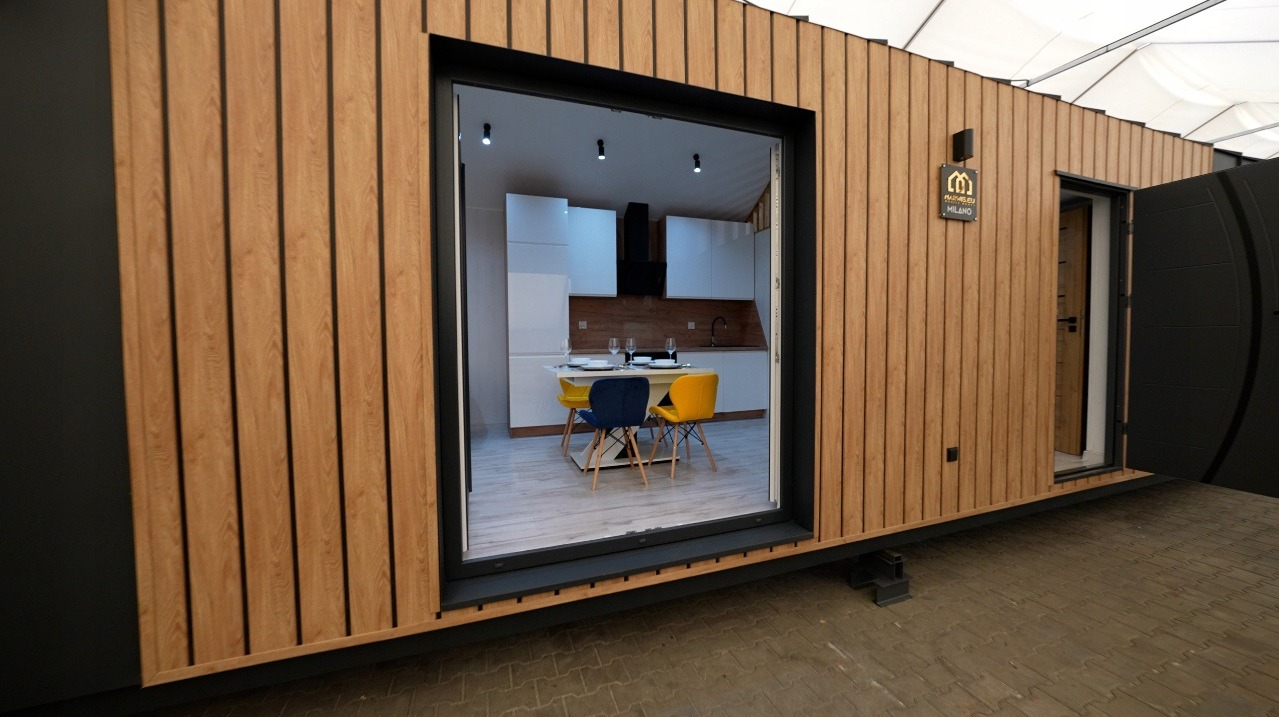 * De structuur is volledig gemaakt van staal en hout. Het huis is gemonteerd op een stalen frame dat beschermd is tegen corrosie,